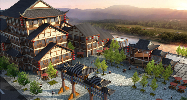 The project is in the north of government of Nanchuan district, belonging to the commercial and administrative core area of new district. By using the natural vertical difference, we plan the riverside commercial street, central pedestrian street, tourism and commercial plaza along the street. We improve the value of development by increasing the proportion of commerce and first floor shops. The style of the architecture is Song Dynasty residence, thus we create an antique street with the feeling of Qinhuai River.