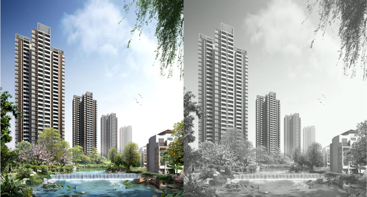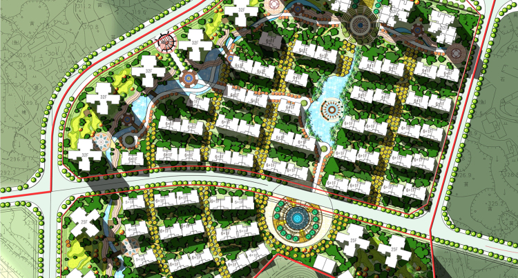 The project is located in the west of Jiangyang district of Luzhou, north of Yangtze river. The whole terrain is typical slope, the north is higher than the south, and the maximum elevation is 70 meters. When we do the design, we follow the change of terrain to make sure all the buildings have good sight. At the same time, we use landscape corridors to separate the high-level from the multi-floors. The style of the architecture is Mediterranean Greece. We try our best to control the cost. The project is successful in bidding.