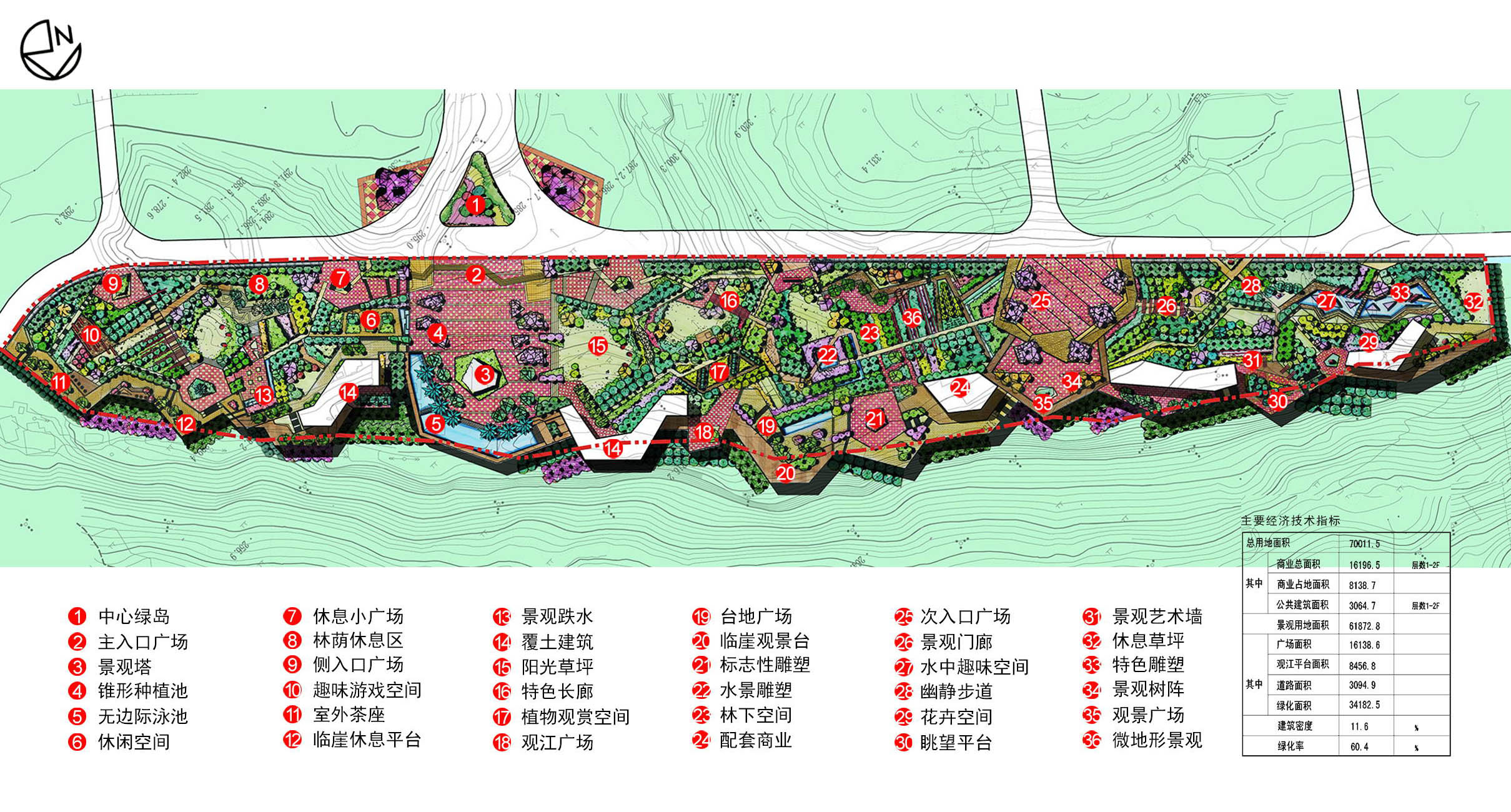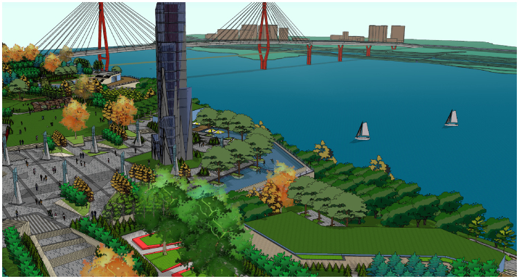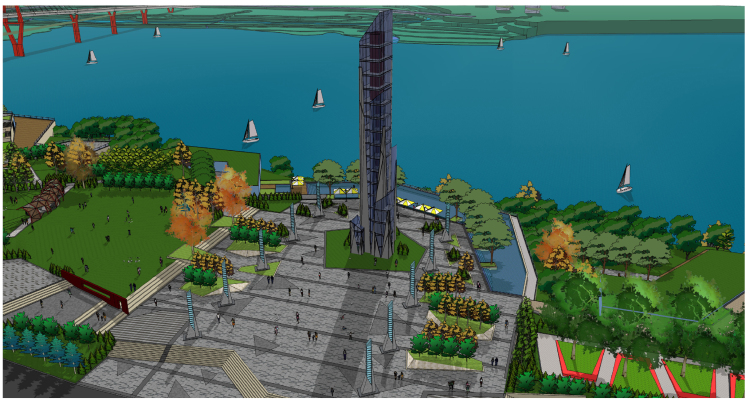 Riverside Park covers an area of 77000 square meters, is located in the west district of Hejiang county. It is close to the expressway from Chengdu to Chongqing. The park is the highest point along the Yangtze River, having an excellent landscape viewing sight, like a city balcony to show other people the beautiful scenery of Hejiang county.The top of the mountain is flat, can be designed as large area of activity and small green space. The site is near the main city road with busy traffic condition, so when we do the design, we need to consider the management of the traffic , the boundary between park and city roads, the arrangement of big public and small private space, to create an attractive park with various activity laying on the top of the mountain.